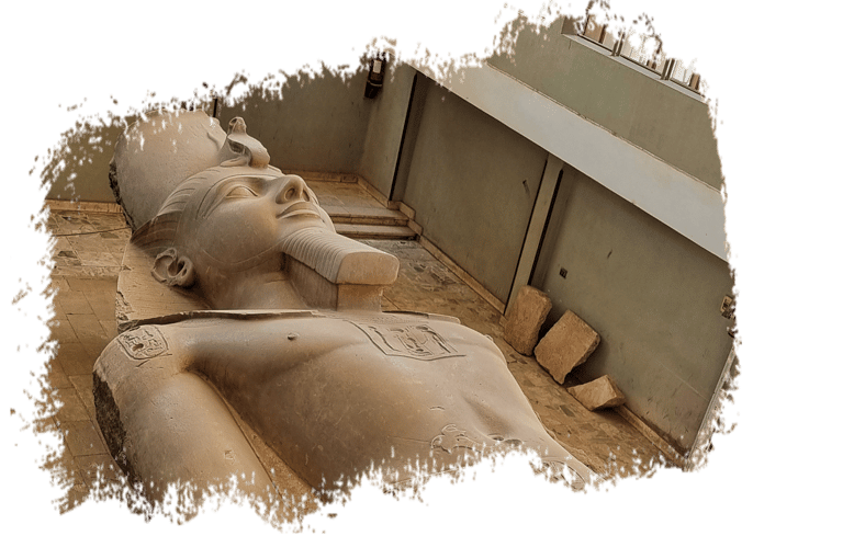 Dia de visitar um museu a céu aberto em Memphis, um sítio arqueológico cheio de peças históricas, incluindo um imenso colosso de Ramsés II que está até hoje exatamente no local onde foi encontrado!