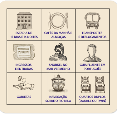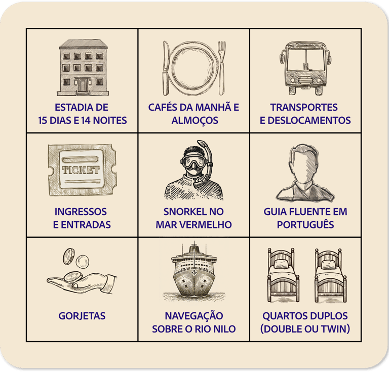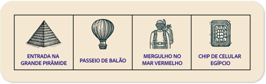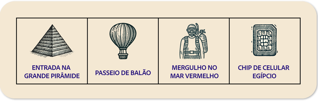 Entradas para as atrações não mencionadas no roteiro.